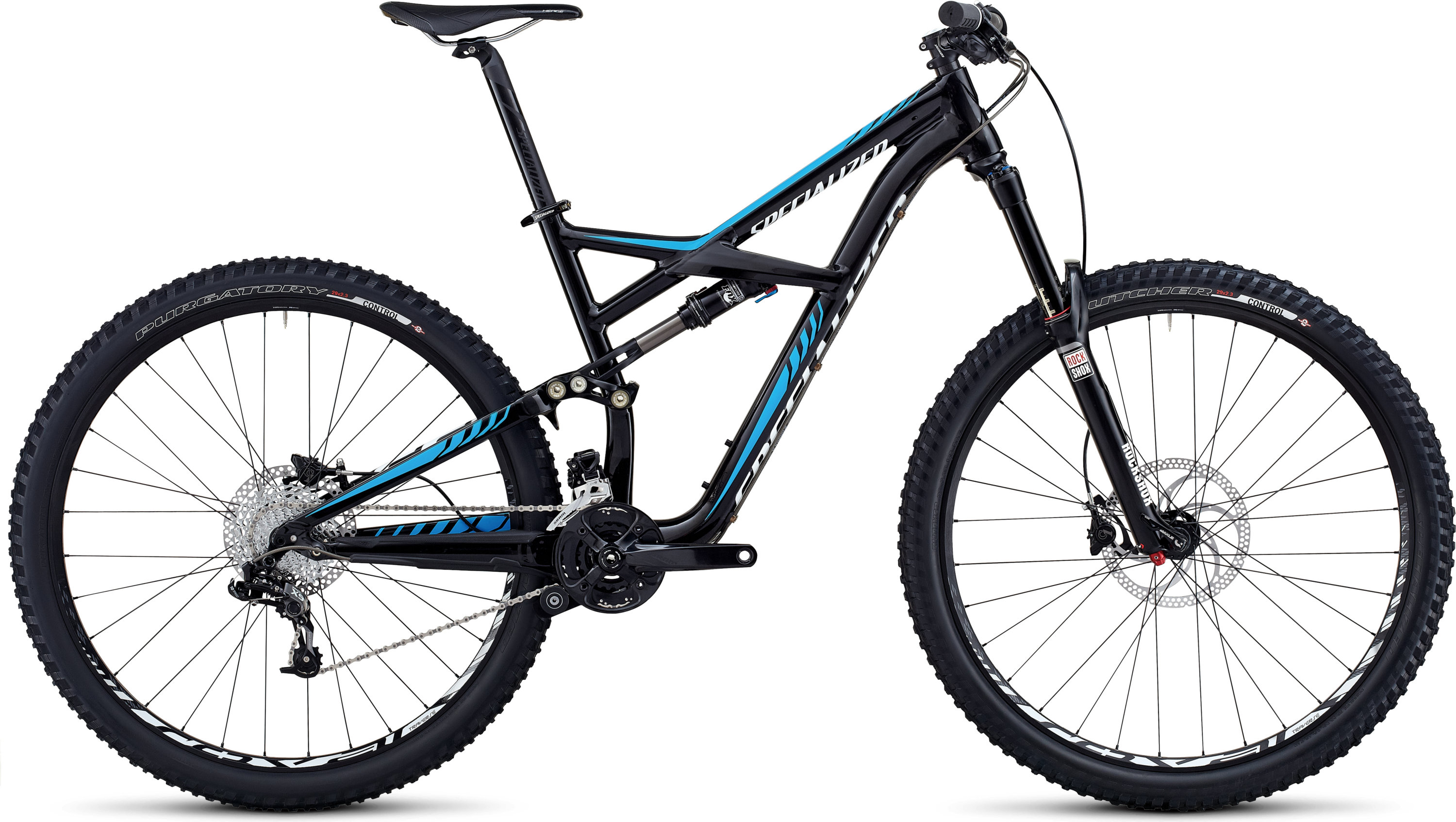 All new 750mm wide alloy handlebars control the new 160mm travel rockshox pike rc fork featuring a great blend of stiffness light weight tuning options and a 15mm thru axle for precise handling roval 29 all mountain rims mated to specialized hi lo hubs 15mm thru axle and a 142 rear hub spacing for durable lightweight and affordable package.